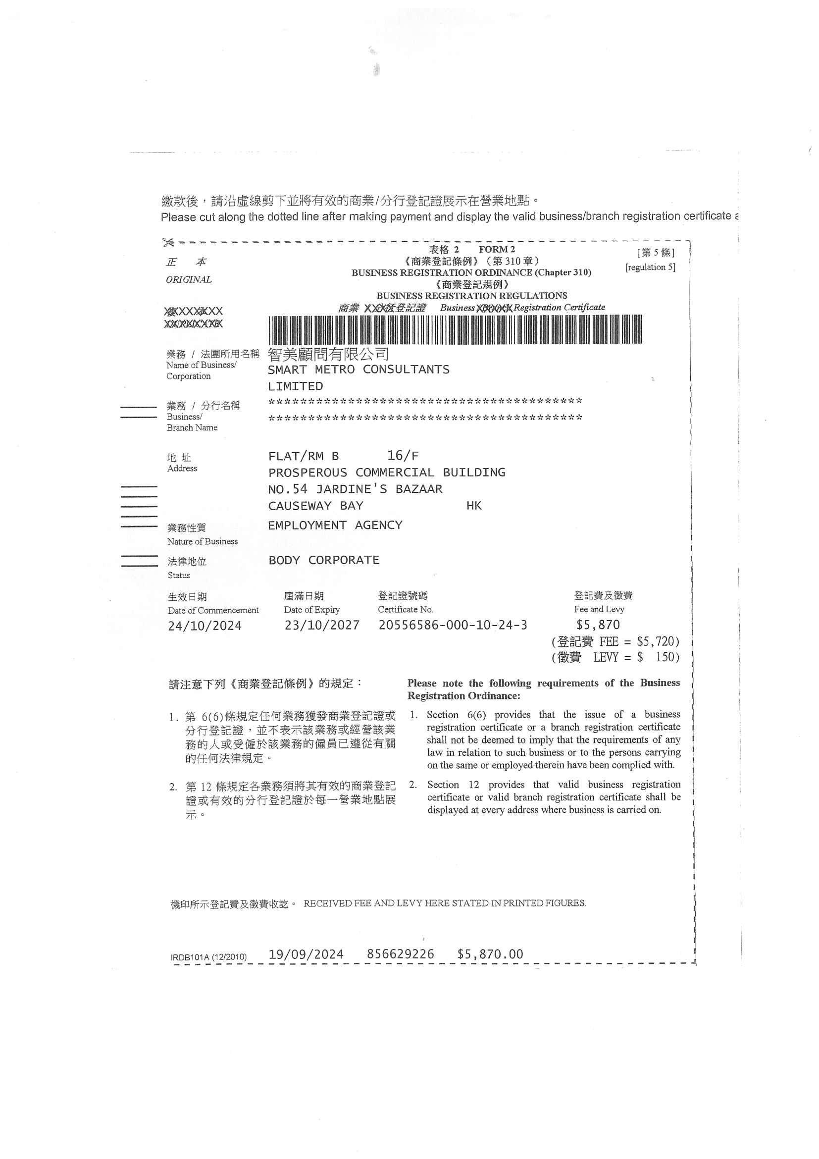 商業登記牌照號碼:20556586-000-10-24-3 勞工處牌照號碼: 77931 印尼領事館牌照號碼: 13881.164.VII.2025 菲律賓領事館牌照號碼: POLOHK-0722-092 (POEA accreditation No.) 孟加拉領事館牌照號碼: 0077 本公司為下列工會會員: 香港僱傭公會 Hong Kong Union of Employment Agencies 印尼勞工中介協會(香港及澳門) Asosiasi Perusahaan Penempatan Tenaga Kerja Terampil Indonesia (Hong Kong-Macao) |
